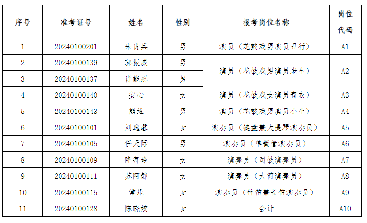 根據《湖南省花鼓戲保護傳承中心2023年公開招聘公告》及有關規(guī)定,經公開報名、資格審查、筆試、面試、專業(yè)能力測試、體檢、考察等程序,經公開招聘領導小組研究,確定朱貴兵等11名同志為湖南省花鼓戲保護傳承中心2023年公開招聘擬聘用人員,現予以公示。